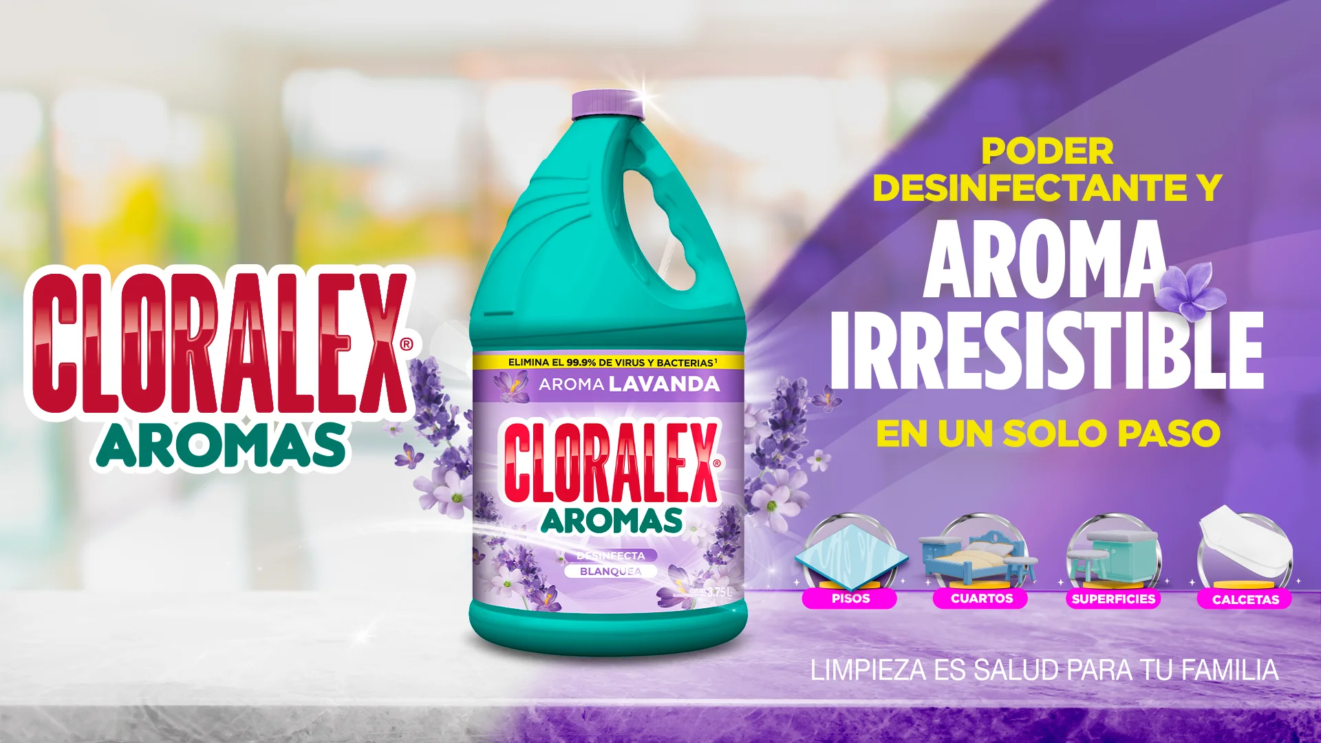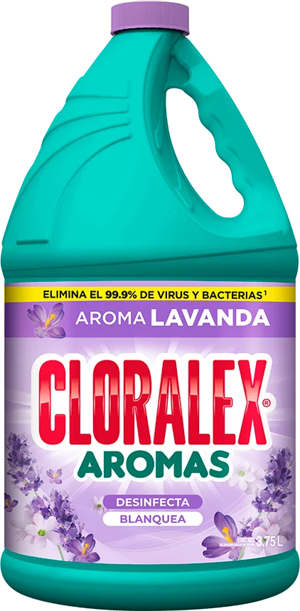 CLORALEX® Aromas con el mismo poder desinfectante de tu cloro, ahora con aroma lavanda, te dará la tranquilidad de desinfectar tu hogar dejando un aroma agradable que le encantará a tu familia.