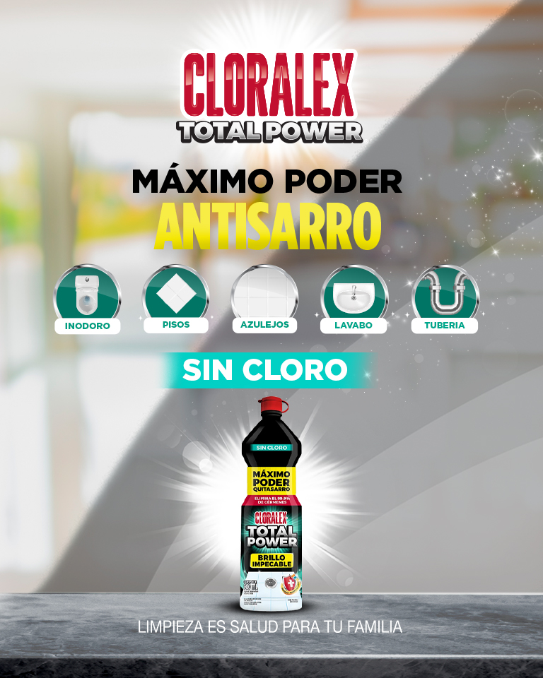 Cloralex Total Power® Sarricida con un máximo poder contra el sarro.